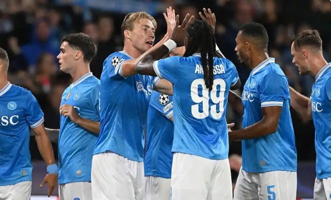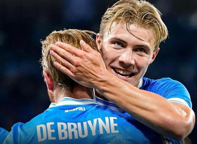 而在第79分鐘,他們又通過一次非常經(jīng)典的邊路傳中中路搶點方式完成了再度的領(lǐng)先反超的,德布勞內(nèi)給到的點很是精準,而霍伊倫德的搶點也是很積極。哪怕面對對方后衛(wèi)的緊逼和門將的出擊,他依然選擇勇敢的頭槌攻門,最終也取得了很好的效果。這兩個非常英超式的進球幫助那不勒斯成功取下了領(lǐng)先。